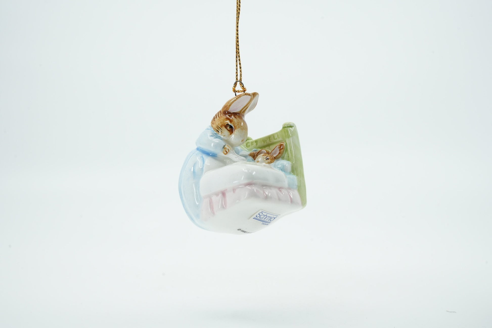 Beatrix Potter Verzamelobject Muis in bed 1988 Schmid | Schmid ornament 302-015 is een prachtig stuk dat elke verzameling van Beatrix Potter-liefhebbers zal verrijken. Beatrix Potter was een gerenommeerde Engelse auteur en illustrator, beroemd om haar schattige kinderboeken met dierenfiguren. Dit ornament brengt de magie van haar verhalen tot leven.