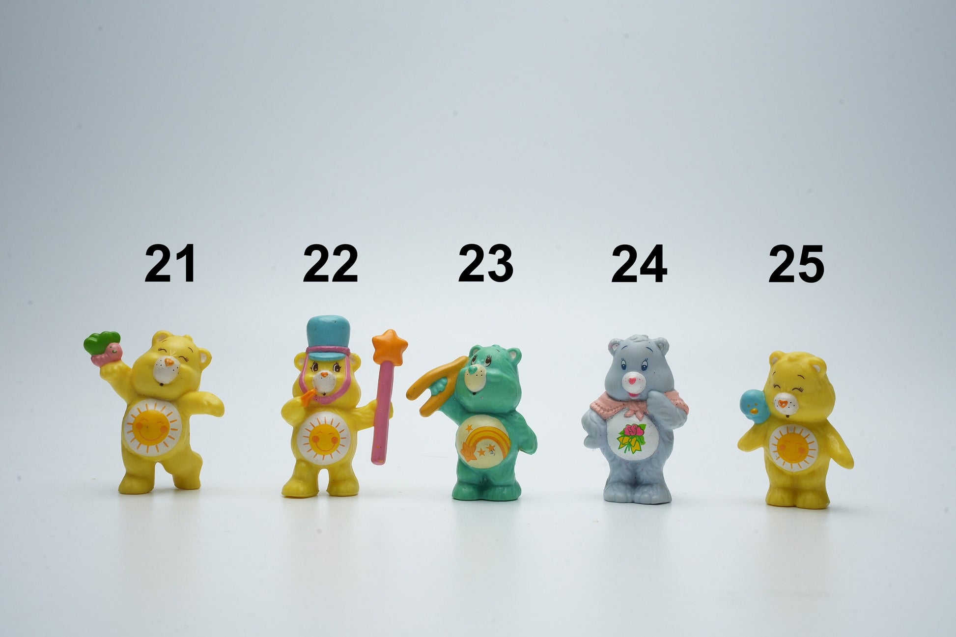 Ontdek de schattige vintage Care Bears figuurtjes die de kindertijd weer tot leven brengen! Deze originele Kenner miniatuurfiguren uit 1984 zijn gemaakt van hoogwaardig PVC-rubber en zijn perfect voor elke verzameling. Kies jouw favoriete Care Bear en laat deze kleurrijke figuren een plekje in jouw hart en huis veroveren. Ze zijn niet alleen een geweldige aanvulling voor verzamelaars, maar ook een prachtig cadeau voor de nostalgische ziel in ons allemaal!
