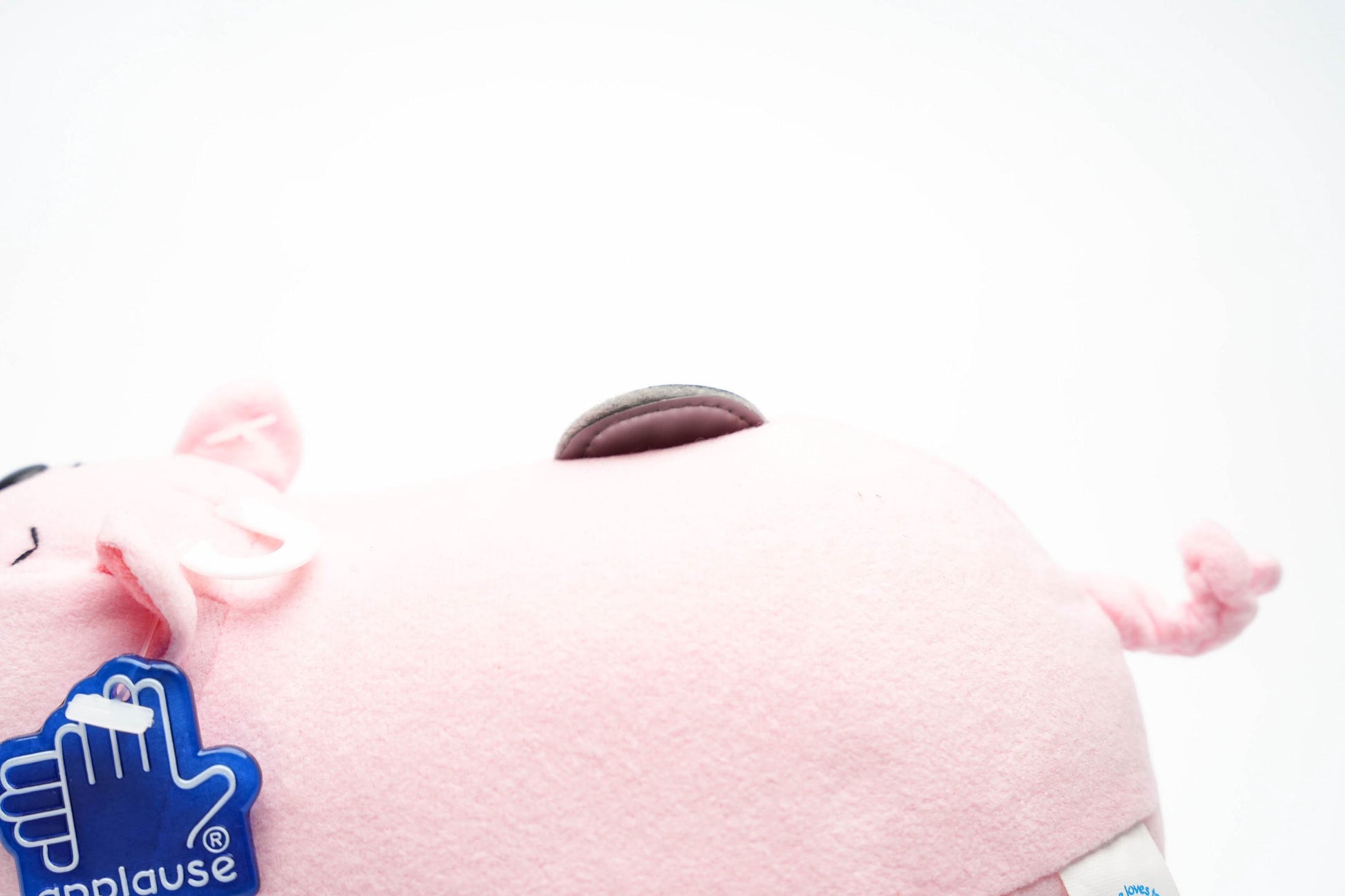 - Zachte pluche met stevige details, inclusief muntgleuf op de rug