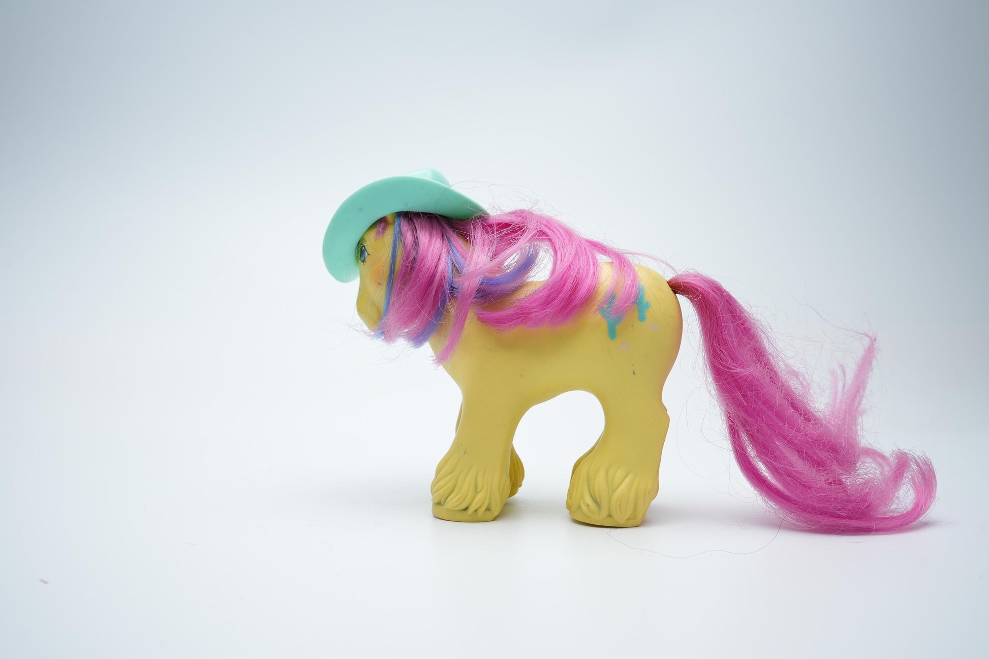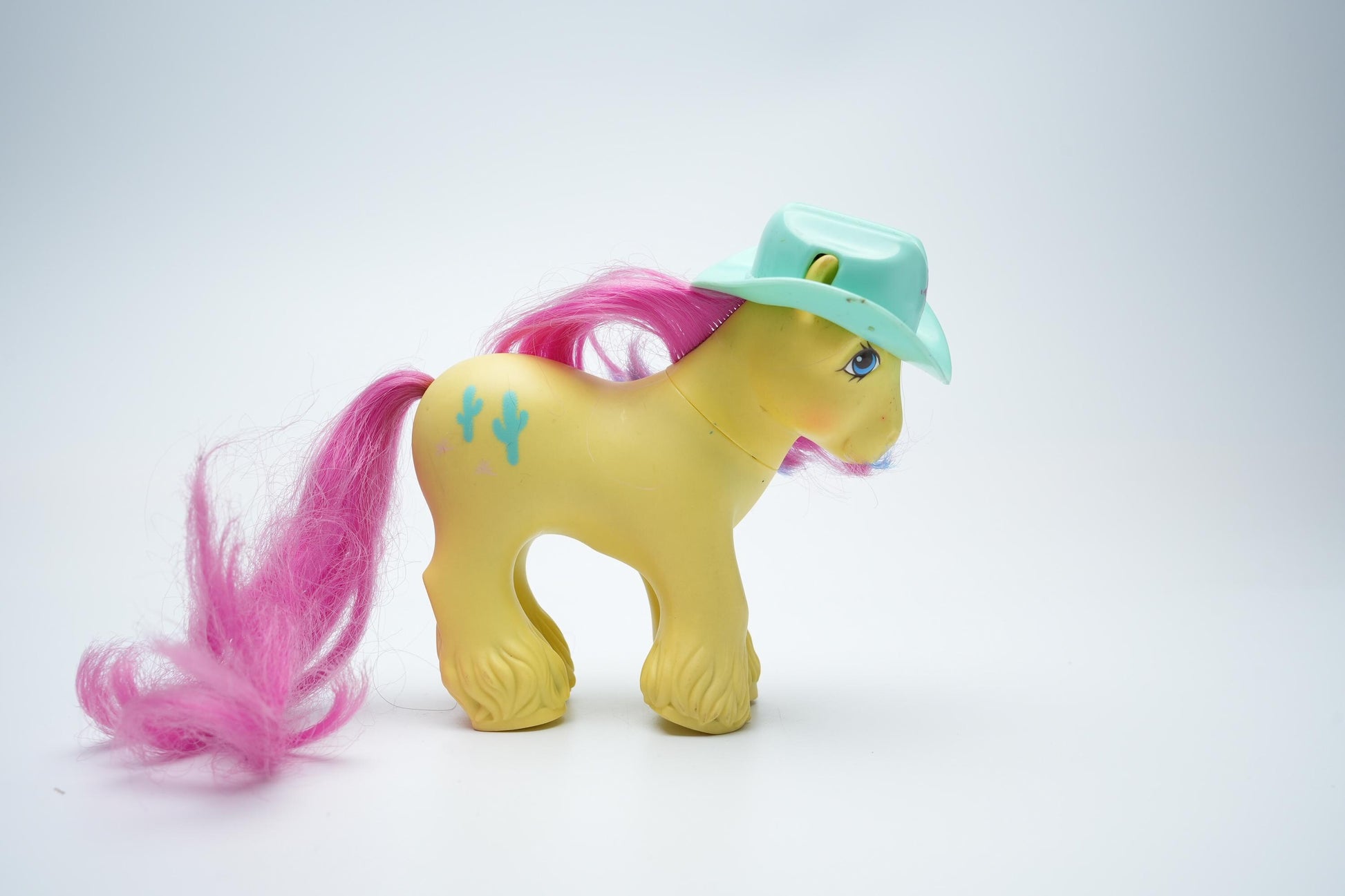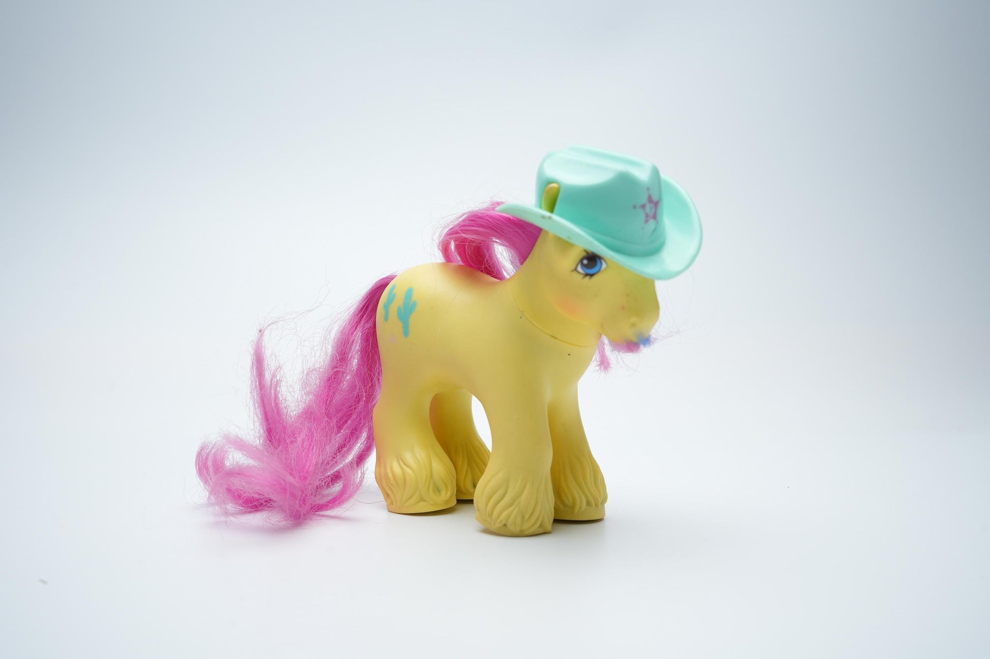Laat je meevoeren naar de jaren '80 met My Little Pony G1 Big Brother Tex! Deze vintage pony is de perfecte aanvulling voor elke verzameling. Met zijn felgele lichaam, levendige roze staart en manen met blauwe highlights, gecombineerd met een unieke mintgroene cowboyhoed, brengt hij een nostalgische charme in huis. De vrolijke uitstraling en het western-thema maken Big Brother Tex niet alleen een speelvriend, maar ook een waardevol verzamelobject.