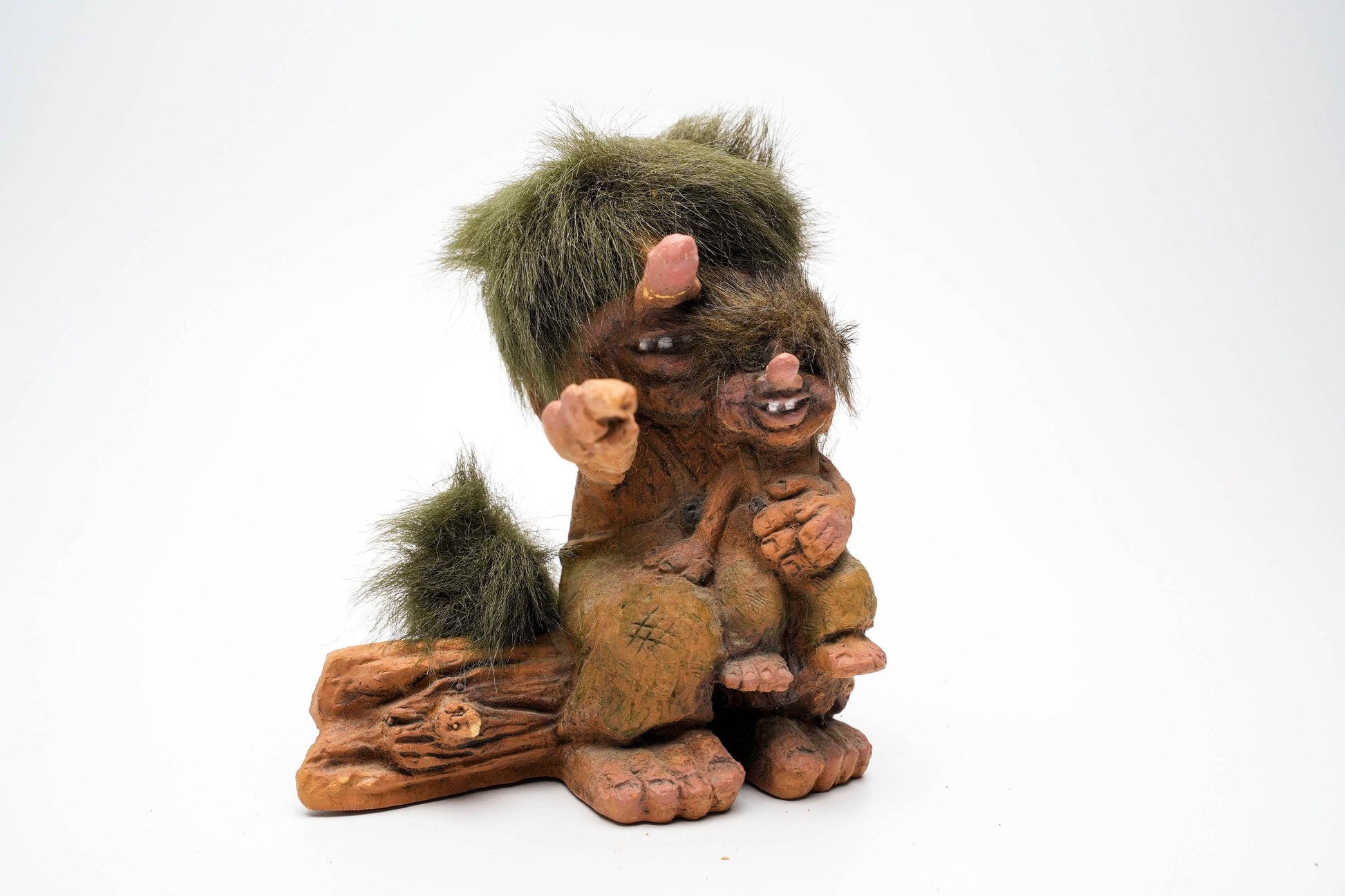 - Details: Vertederend tafereel van een trol met een kind, zittend op een boomstronk - Een echte blikvanger.