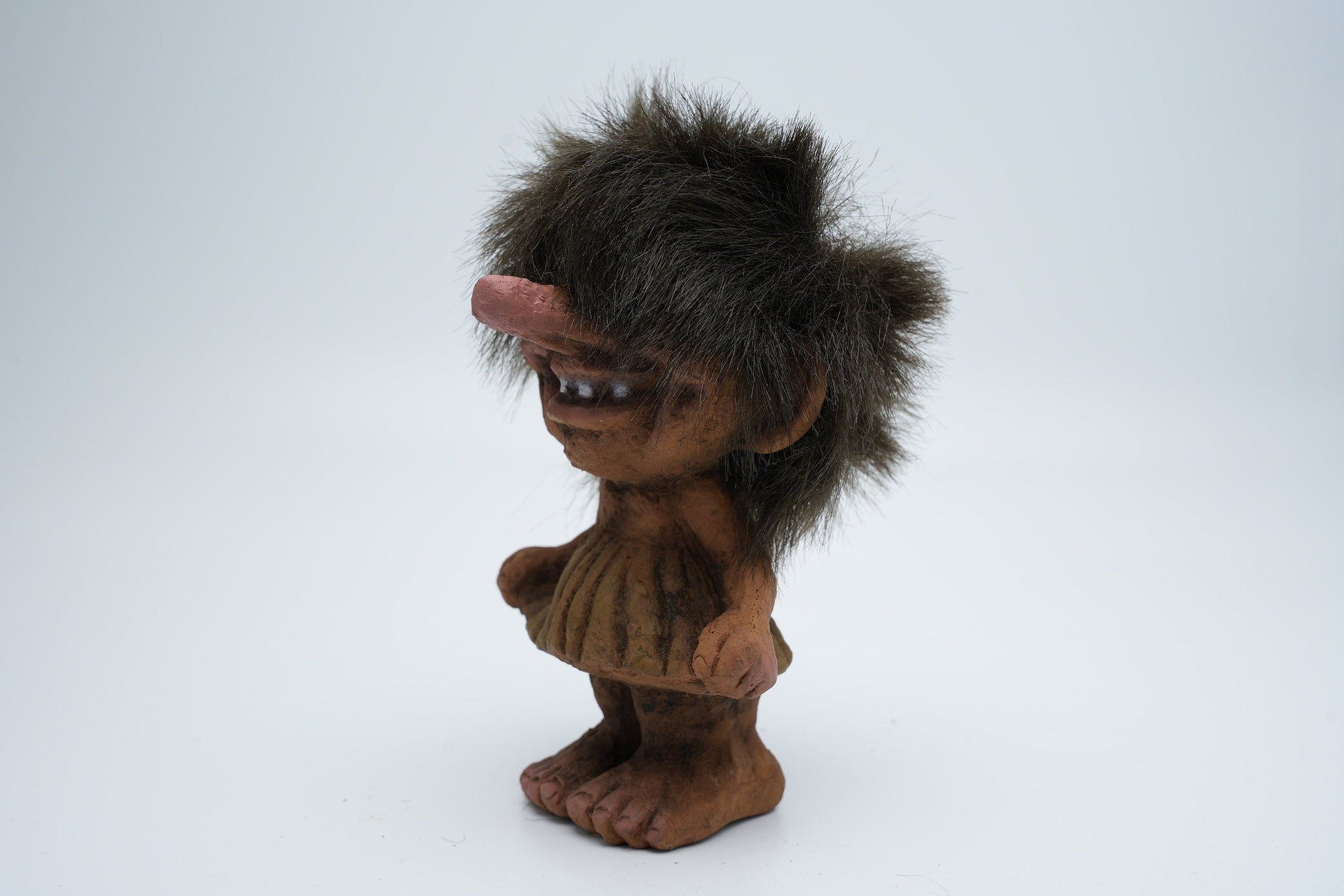 Ontdek de betovering van de Nyform Troll nummer 115 - een charmant meisje in een jurk met handen in haar zakken, handgemaakt in Noorwegen. Dit unieke trollenbeeldje is niet alleen een decoratief object, maar ook een prachtig verzamelitem dat karakter en warmte aan elke ruimte toevoegt. De zorgvuldige ambacht en aandacht voor detail maken het een must-have voor elke liefhebber van vintage decor.