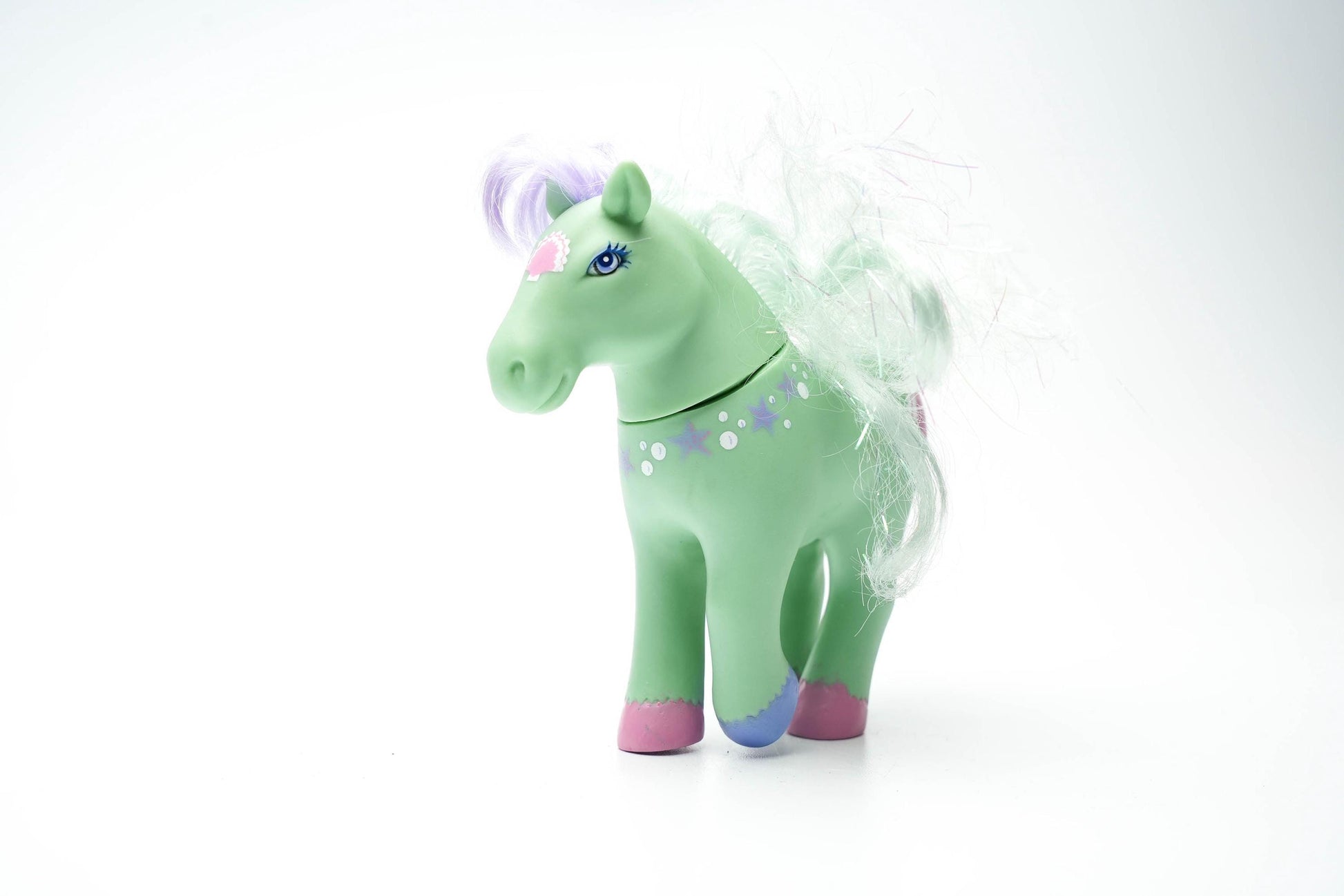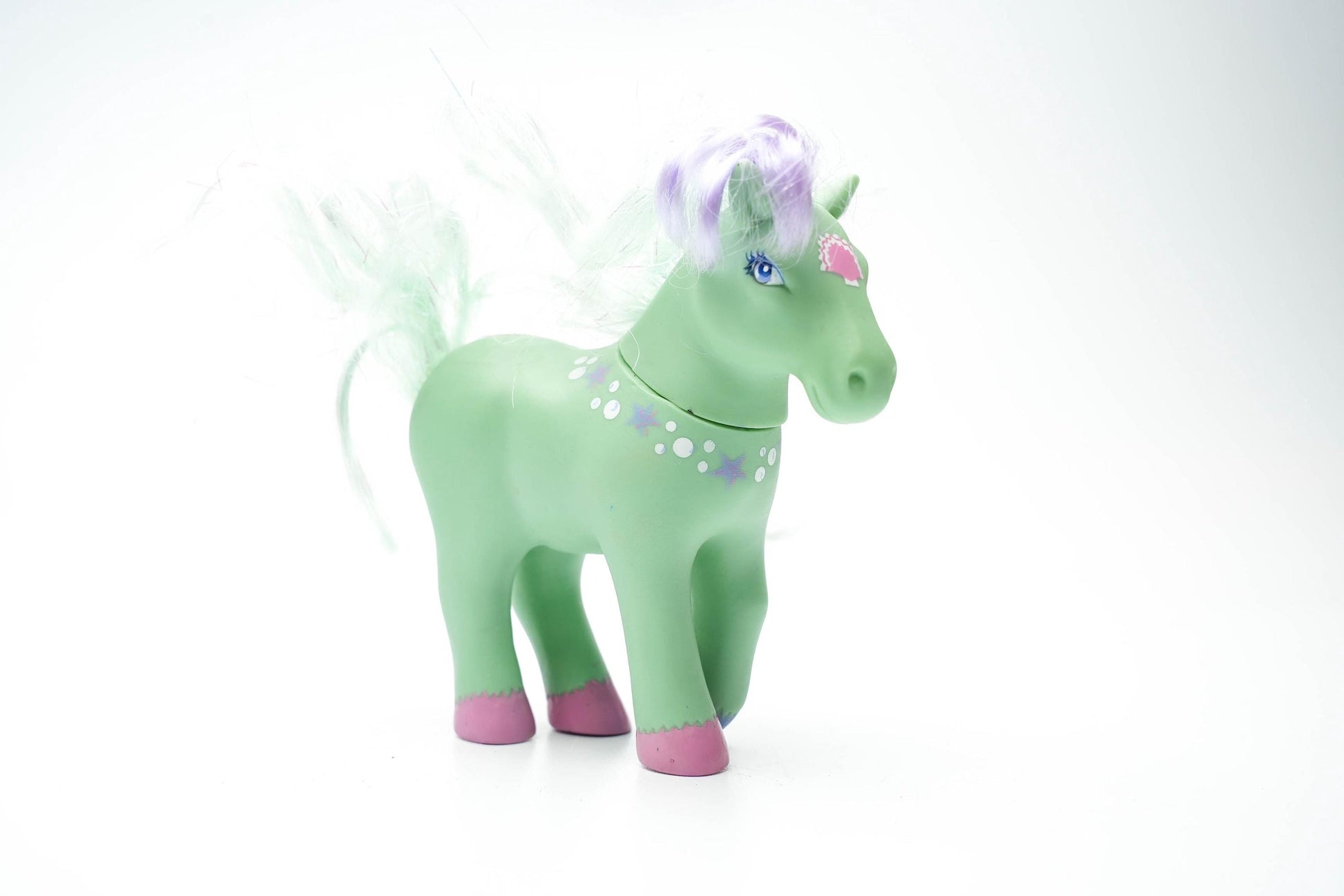 Vintage 1984 Lanard Toys Paard – Groen met Sterren en Hartje – Nostalgisch Speelgoedpaardje