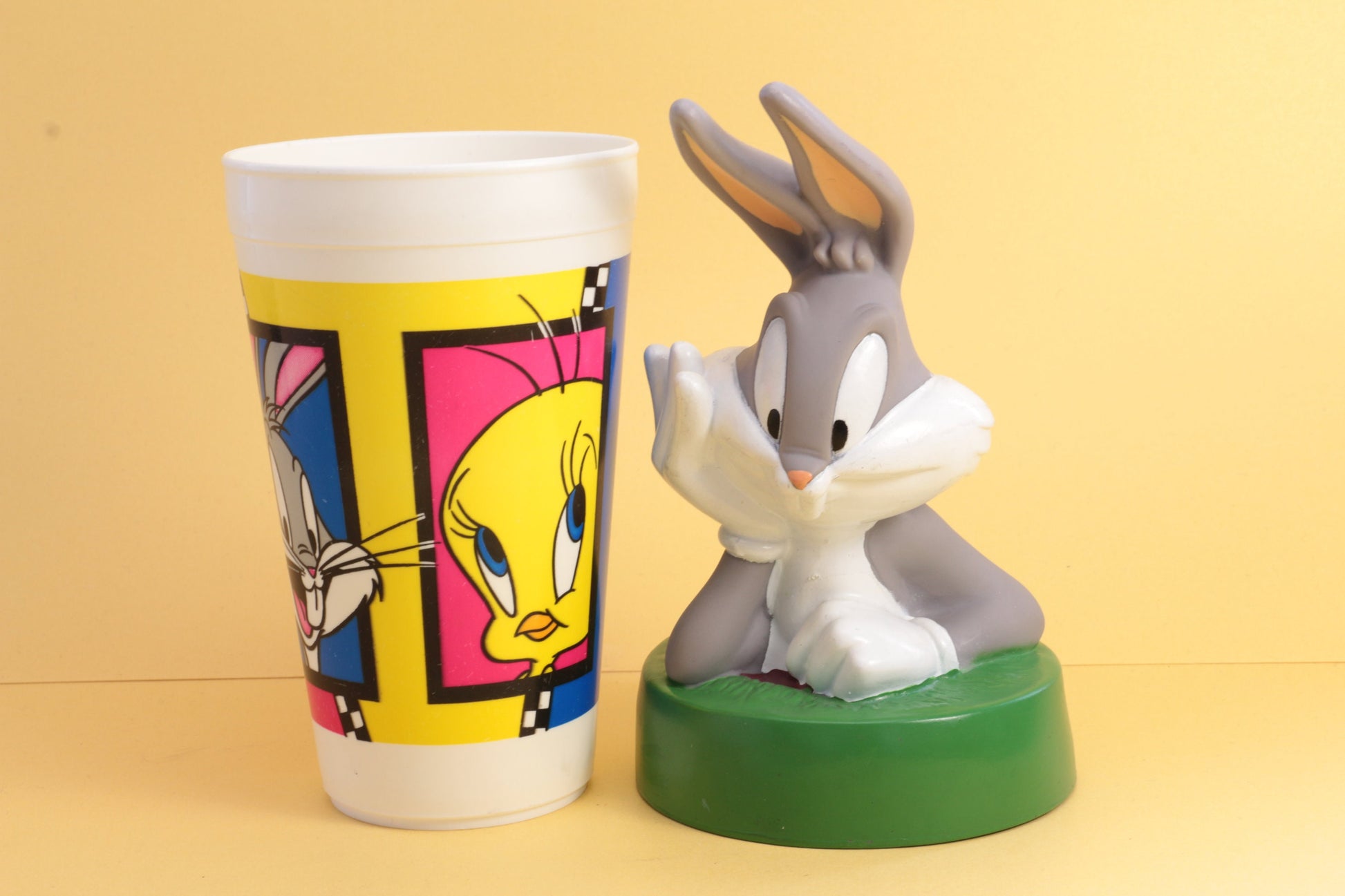 Vintage Bugs Bunny beker met gat voor een rietje | Vintage beker | Cartoon beker | Warner Bros 1995