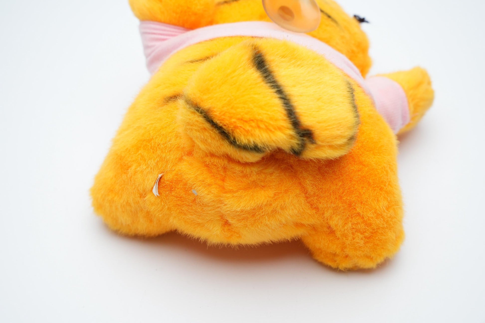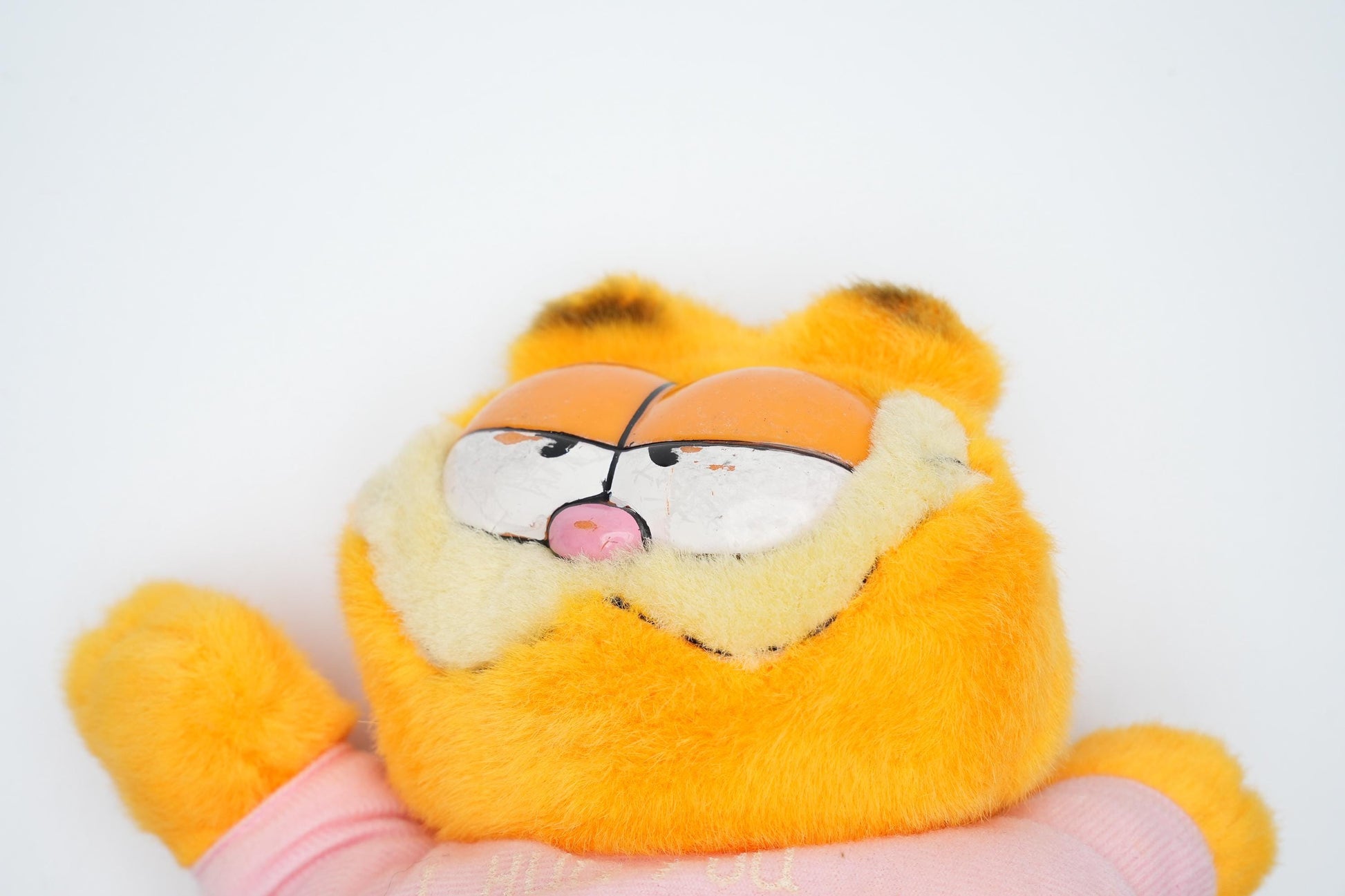 Breng de charme van de jaren '80 in huis met deze unieke Vintage Garfield Knuffel met Roze Sjaal, geproduceerd door United Feature Syndicate Inc. en Paws in 1981. Deze pluchen Garfield, perfect in zijn luie houding, is niet alleen een knuffel maar ook een nostalgisch verzamelobject dat met liefde en humor de geest van de iconische stripkat vastlegt.