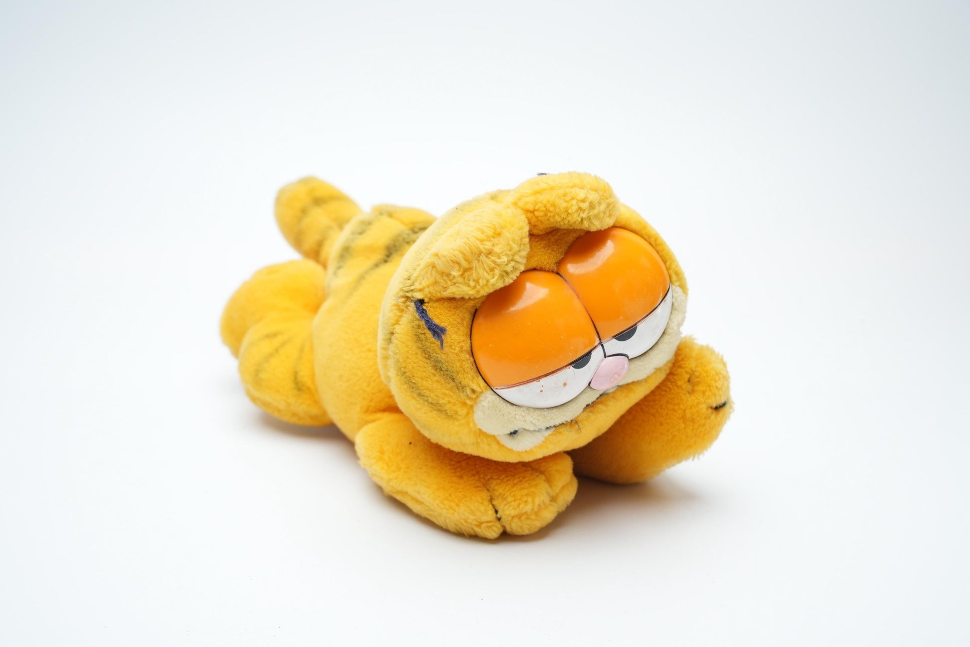 - Kenmerken: Vintage pluchen Garfield in liggende houding - Zacht en knuffelbaar met kunststof ogen voor een authentieke look.