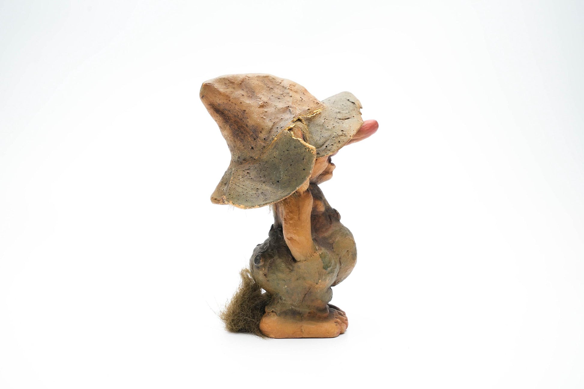 Vintage Nyform Trol met Hoed – Noors Handgemaakt Trollenbeeldje – 15 cm / ca. 5.9 inch